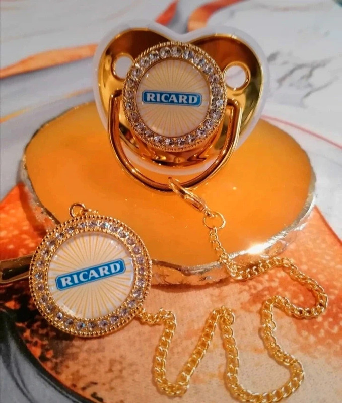 Tétine, sucette avec attache doré personnalisé avec la photo / logo de votre choix