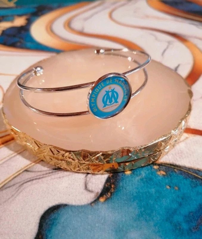 Superbe bracelet manchette Olympique de Marseille en acier inoxydable, doré ou argenté et taille unique.