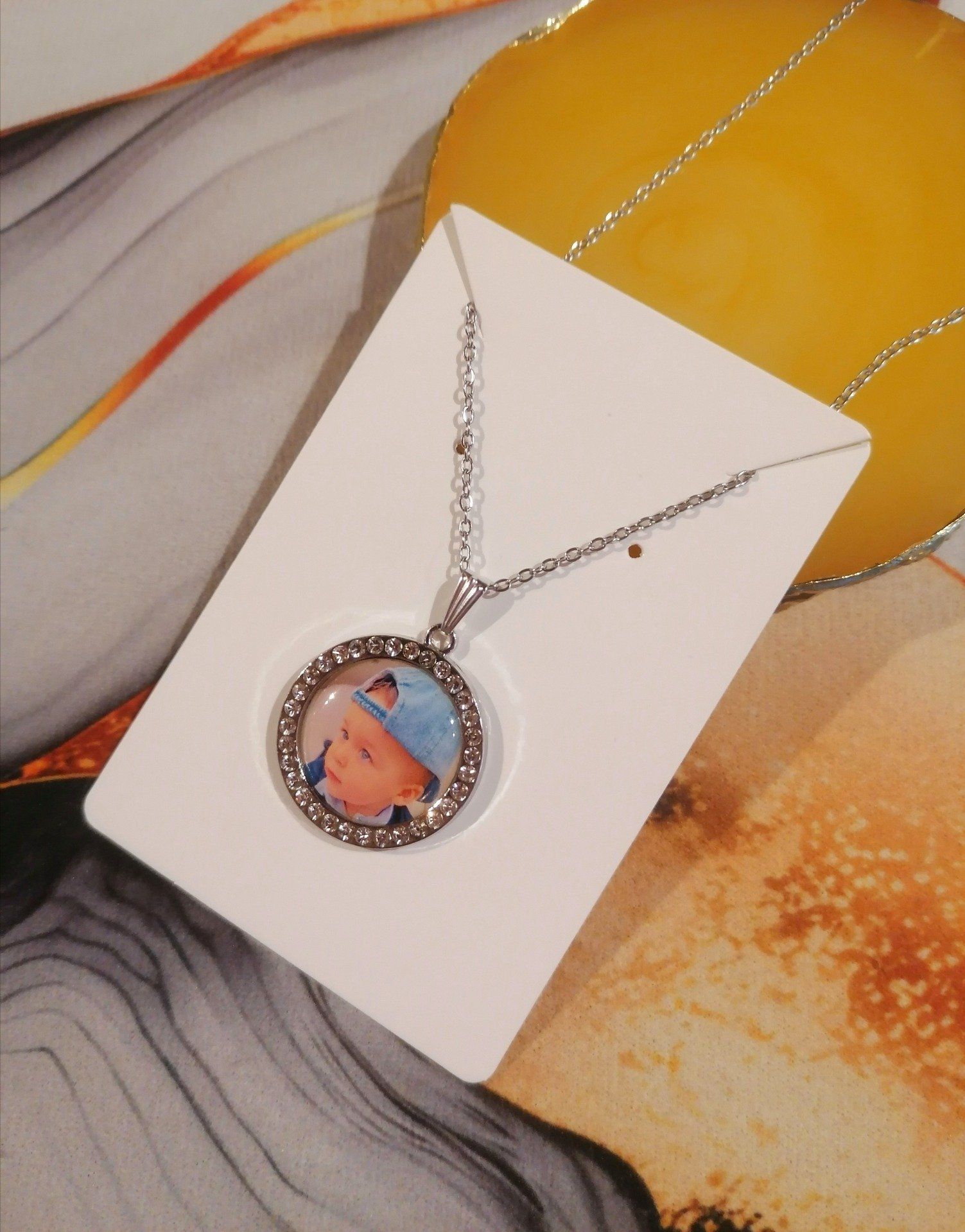 Collier pendentif avec la photo ou le logo de votre choix, un souvenir inoubliable.