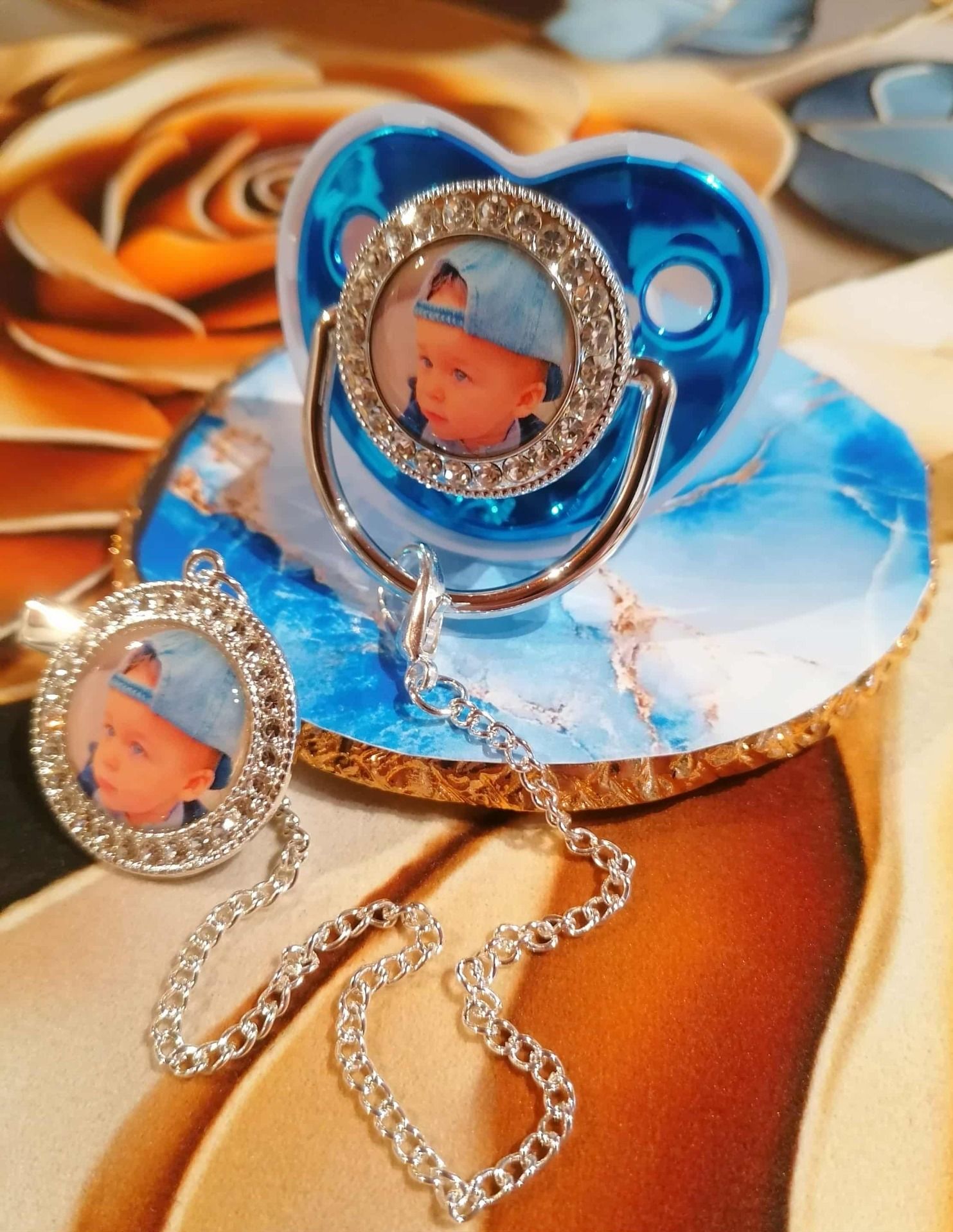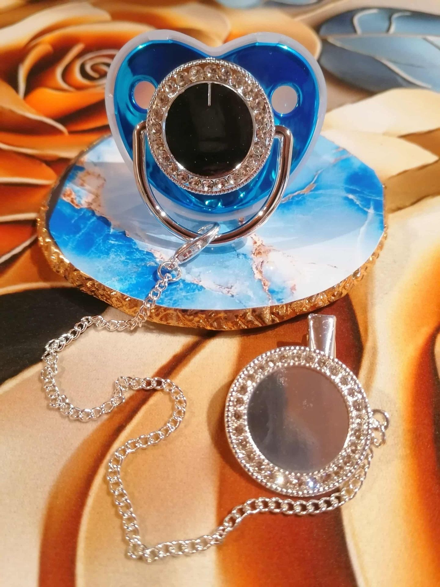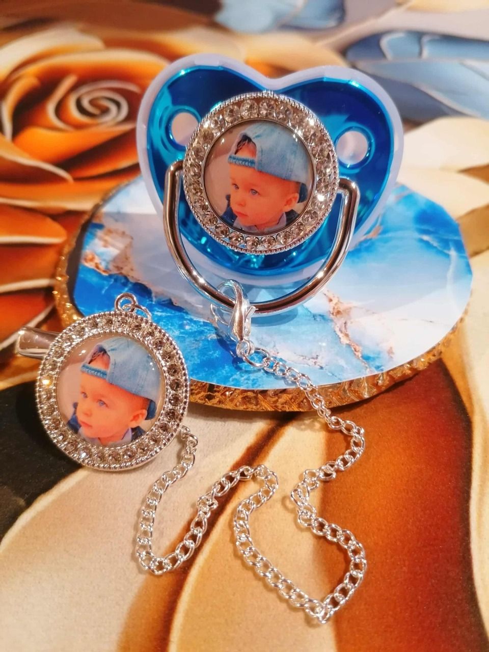 Sucette strass avec attache personnalisé avec la photo / logo de votre choix