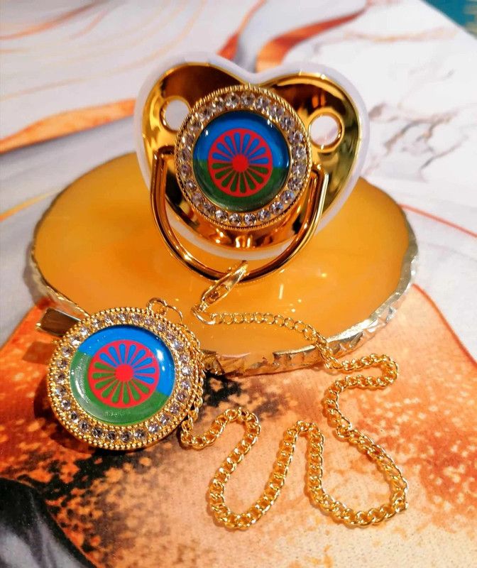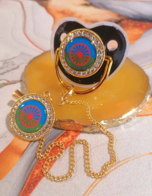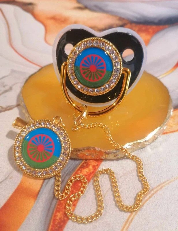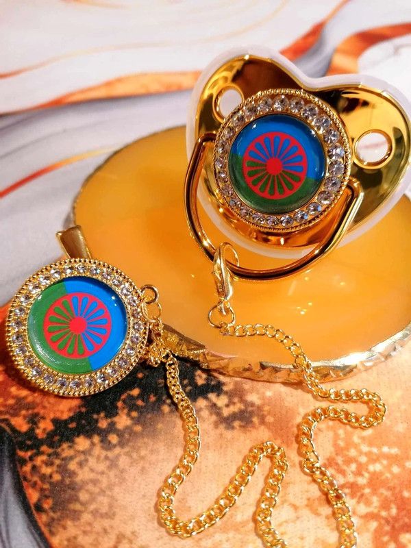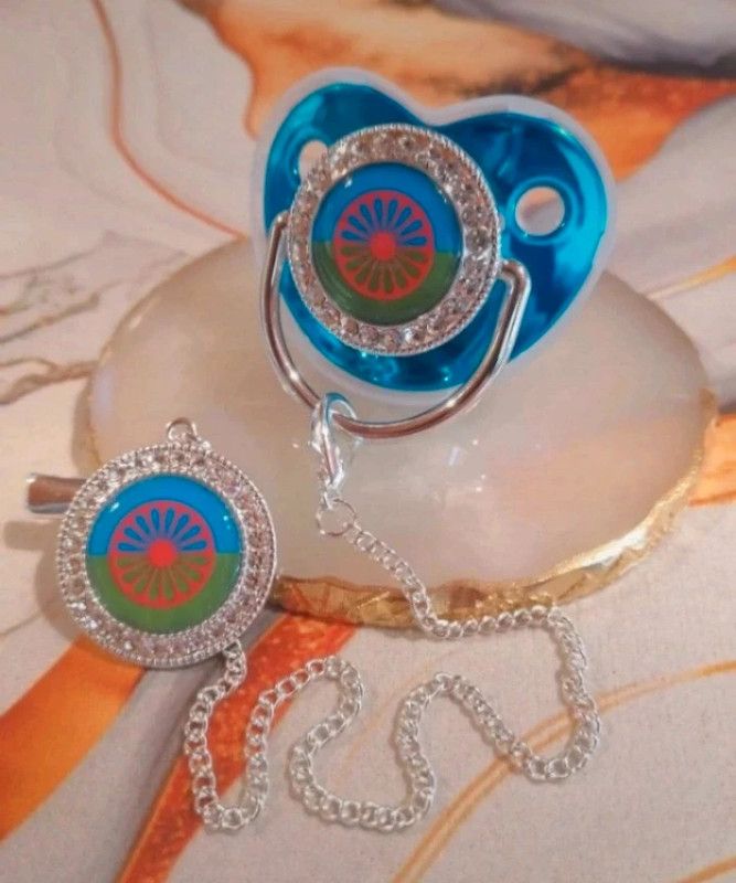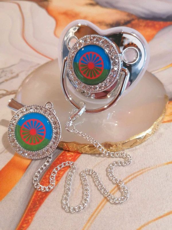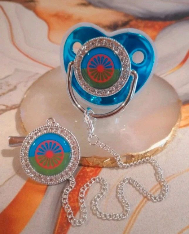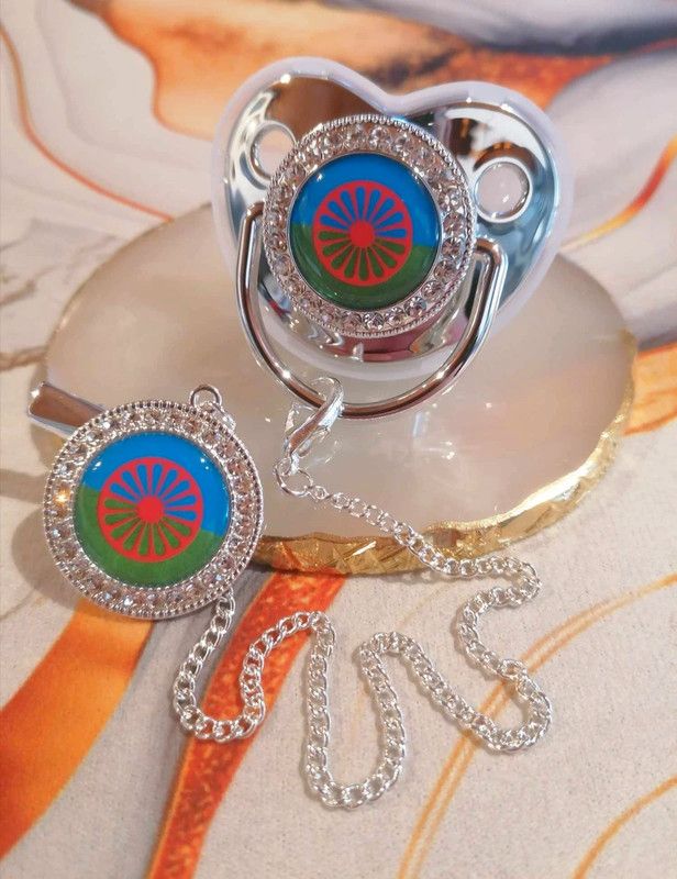 Tétine, Sucette strass avec attache drapeau voyageur gitan