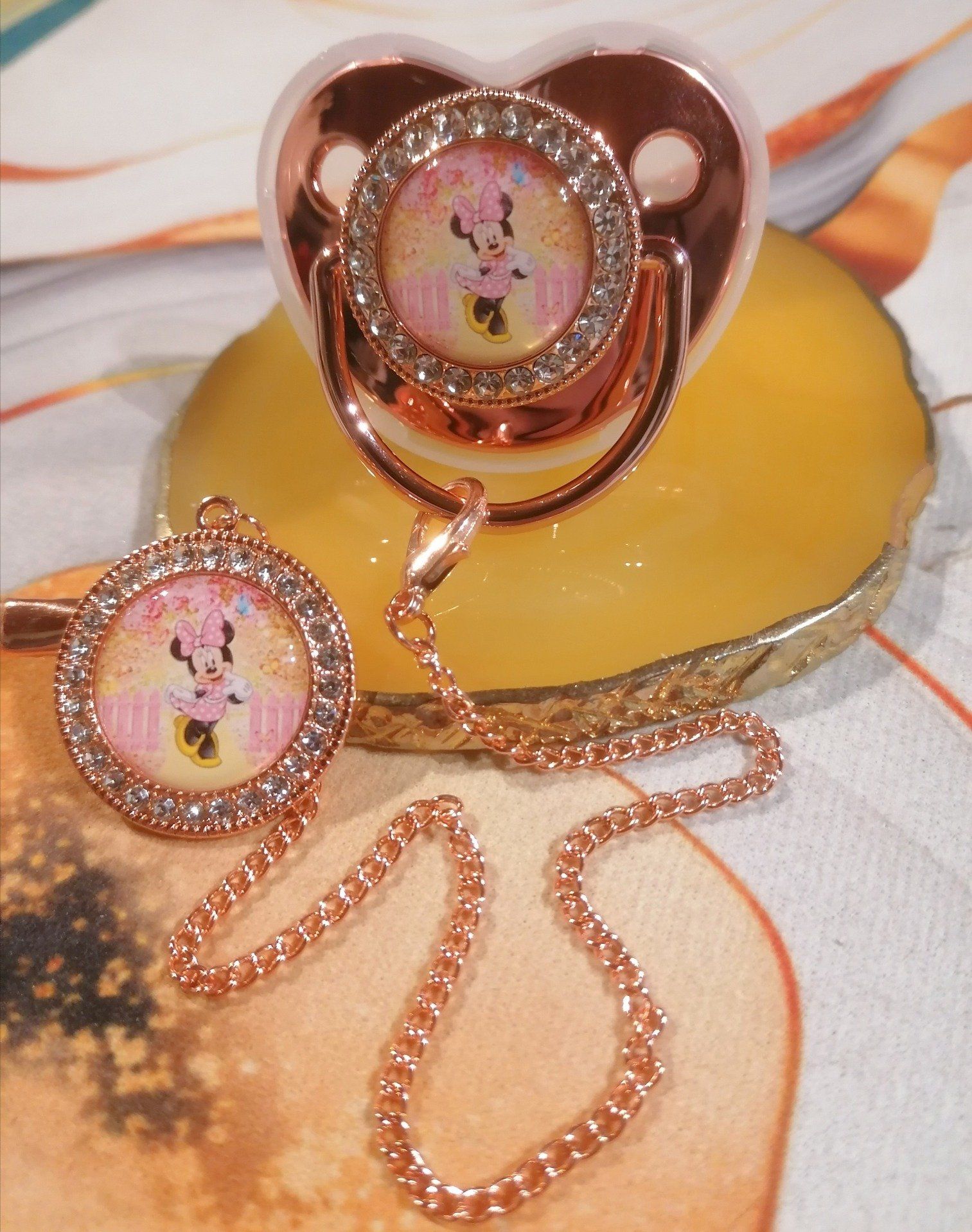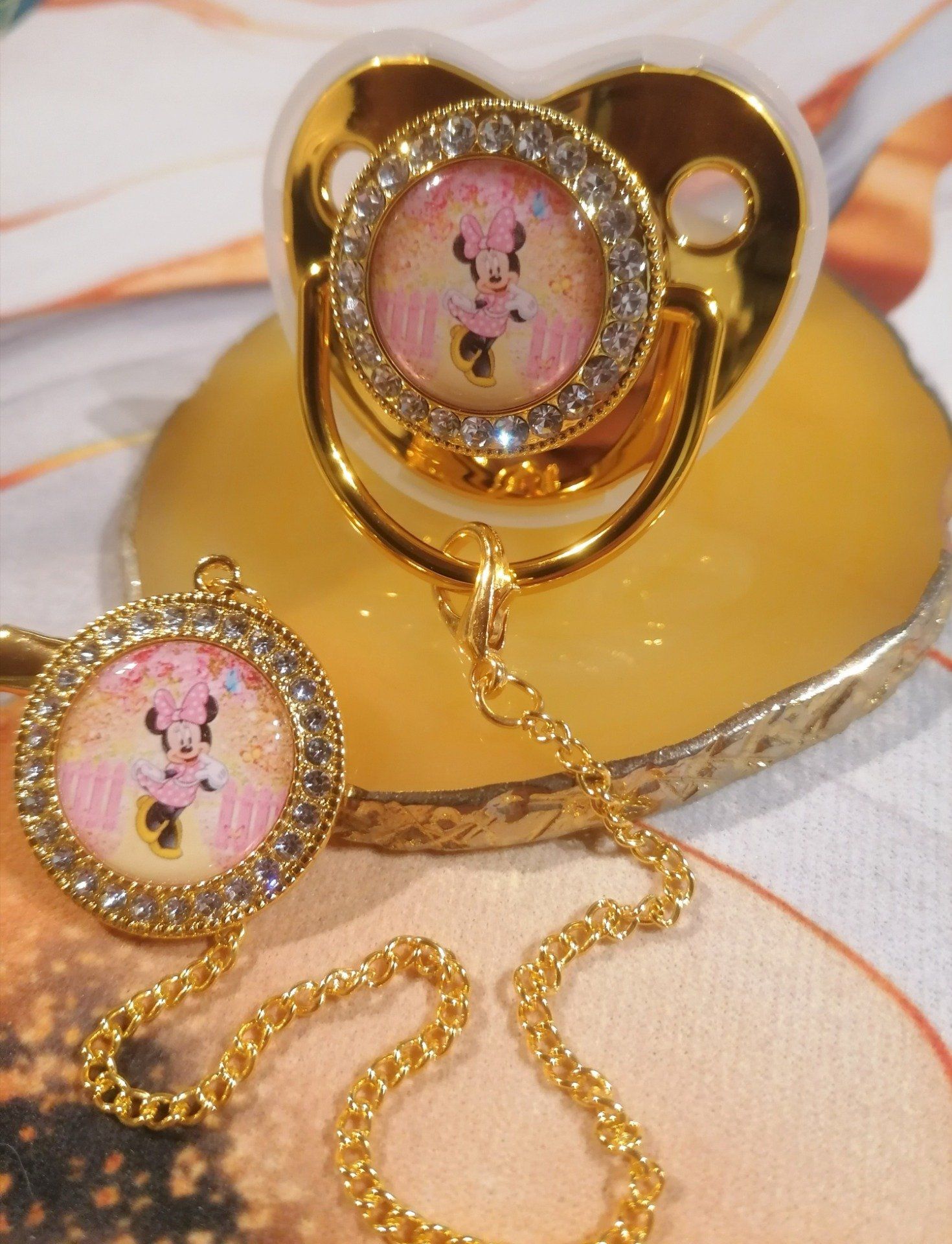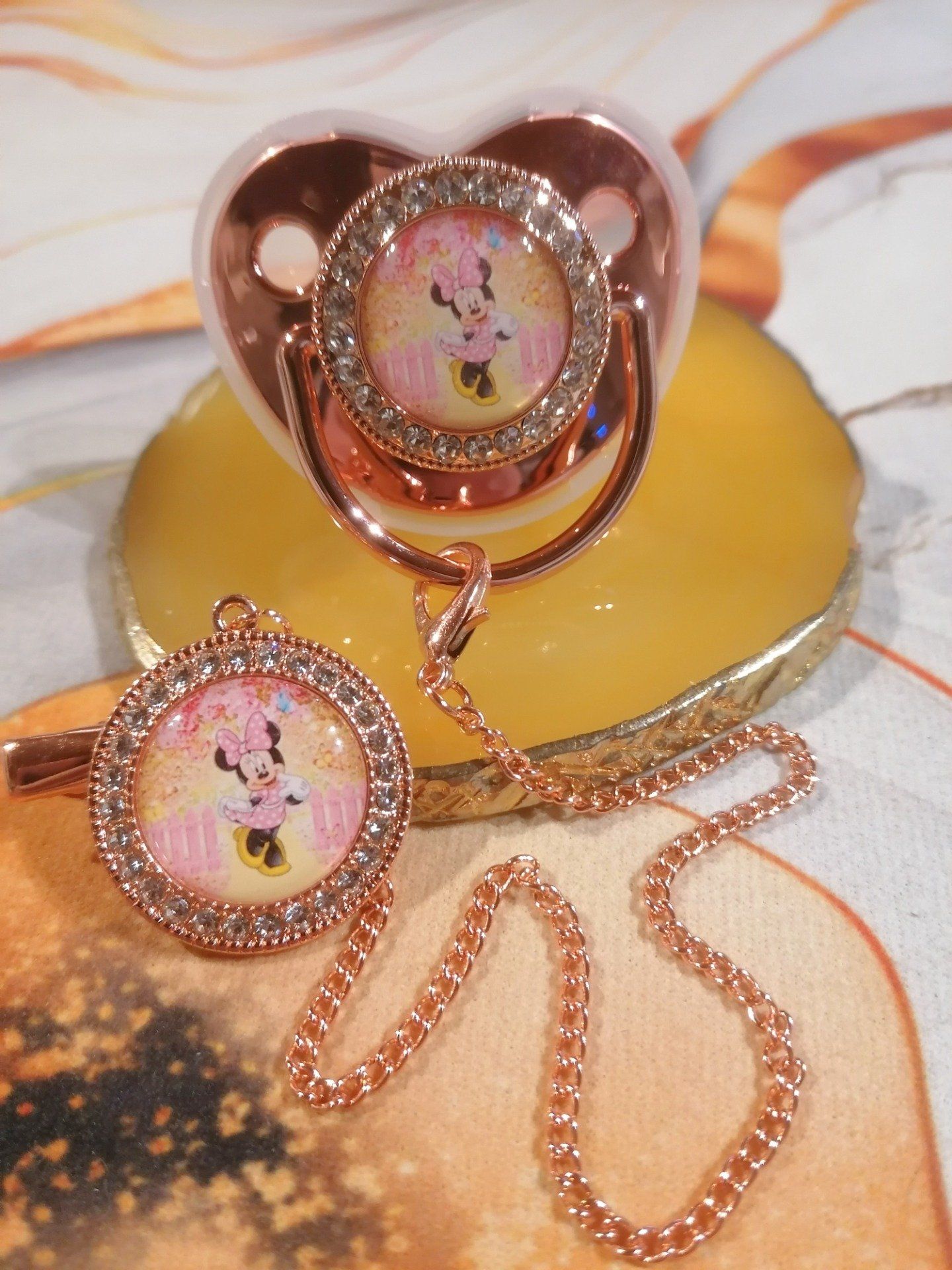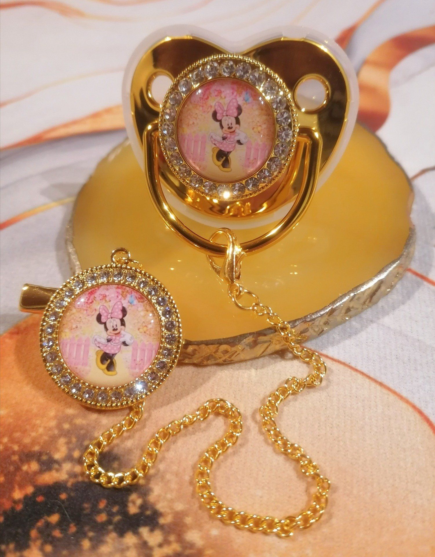 Tétine, Sucette strass avec attache Minnie