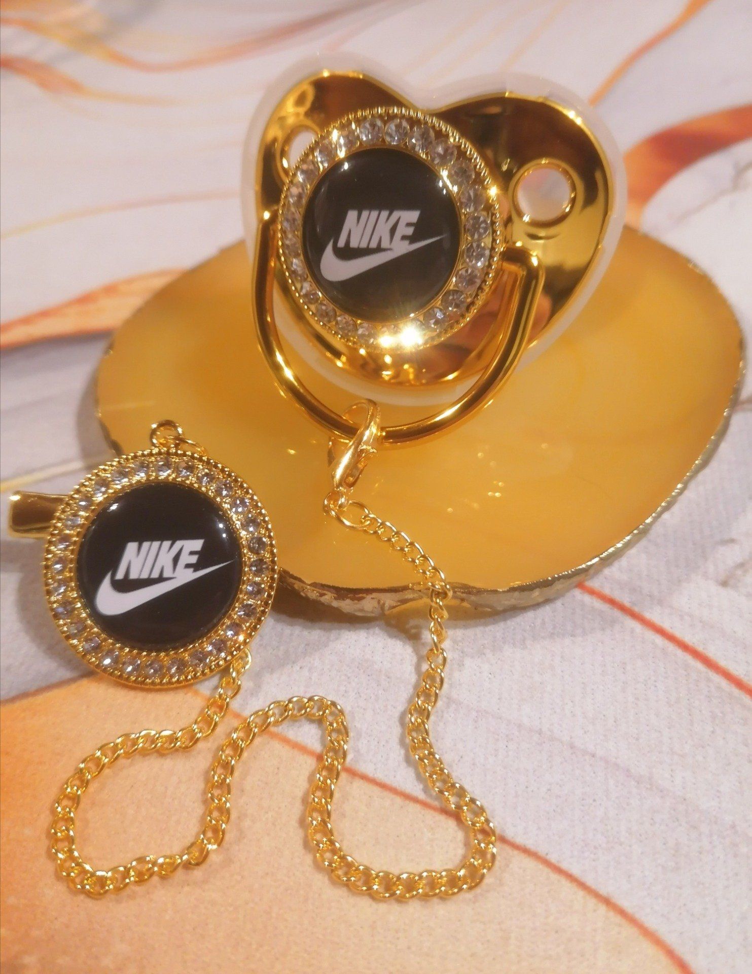 Tétine, Sucette strass avec attache Nike
