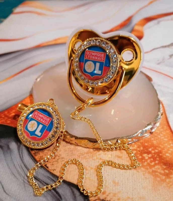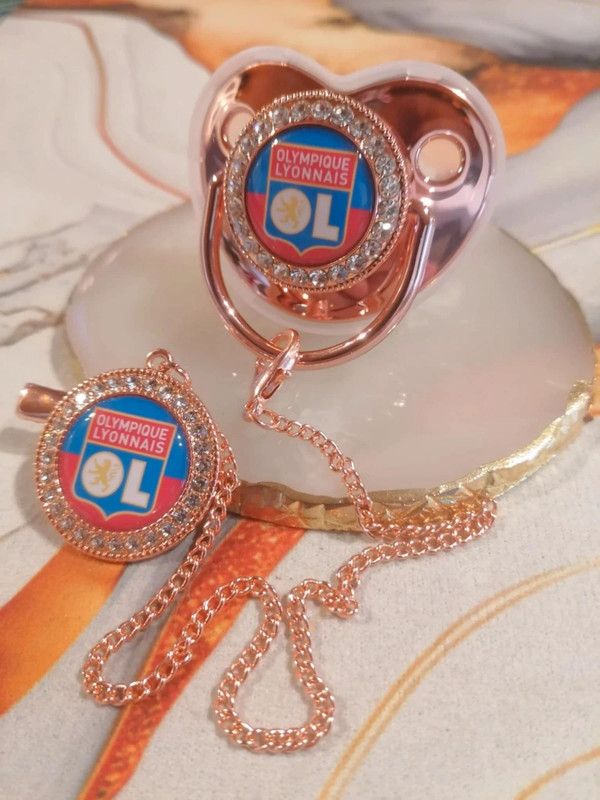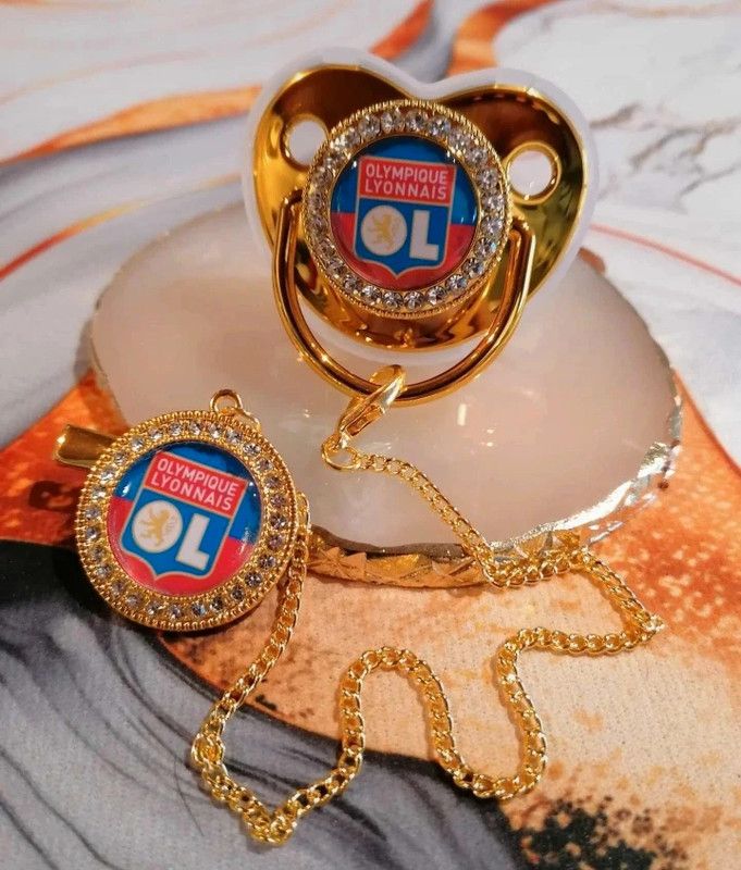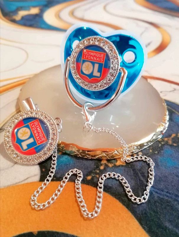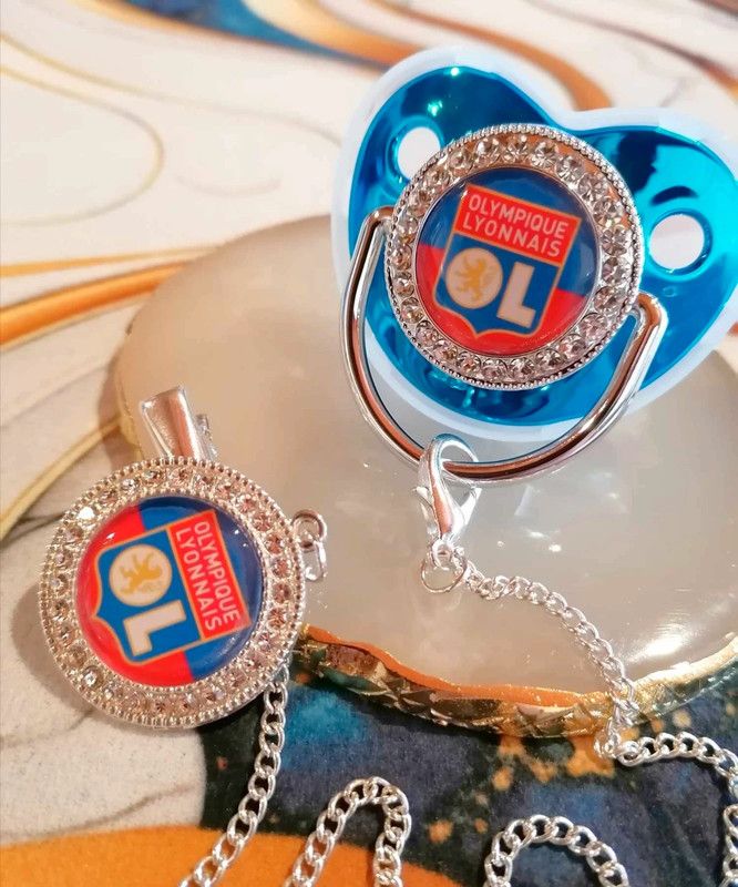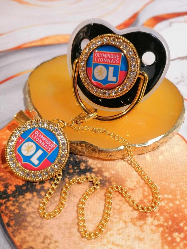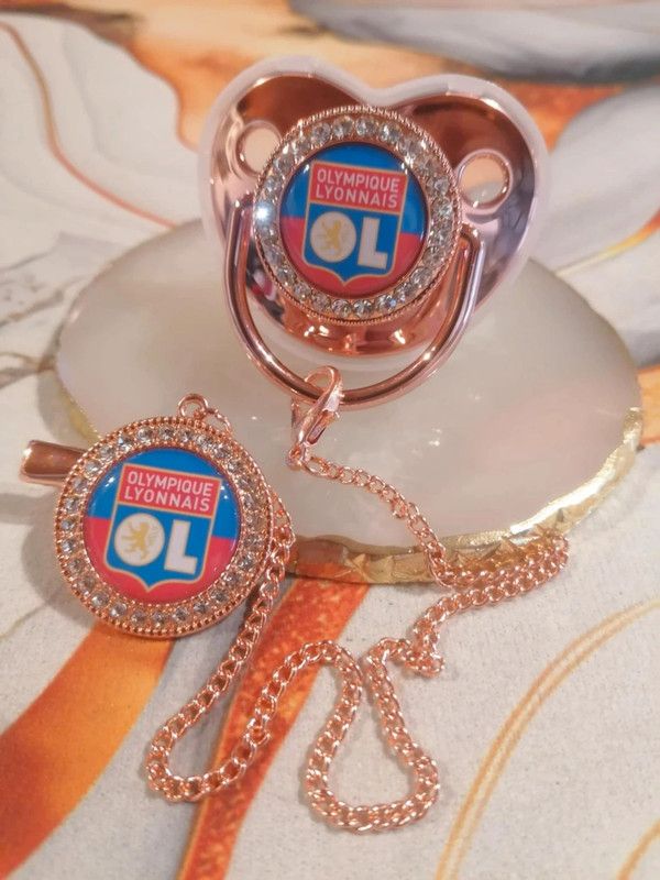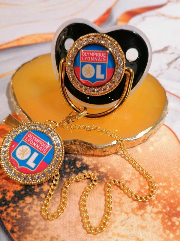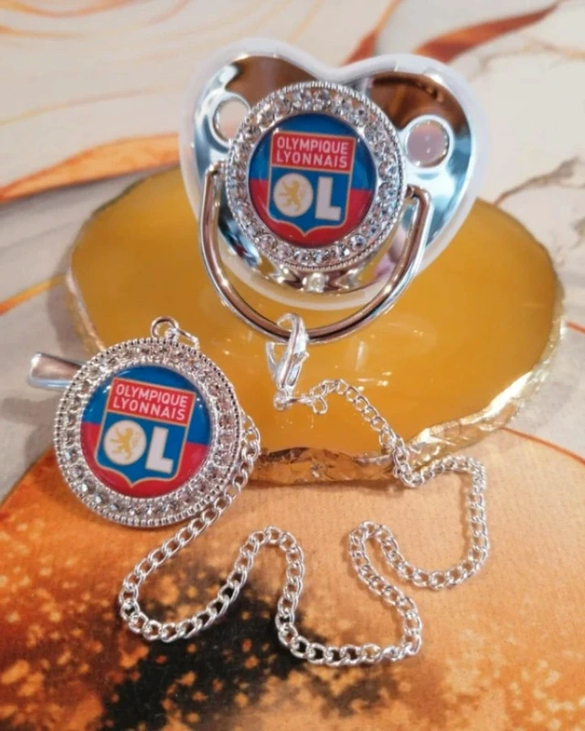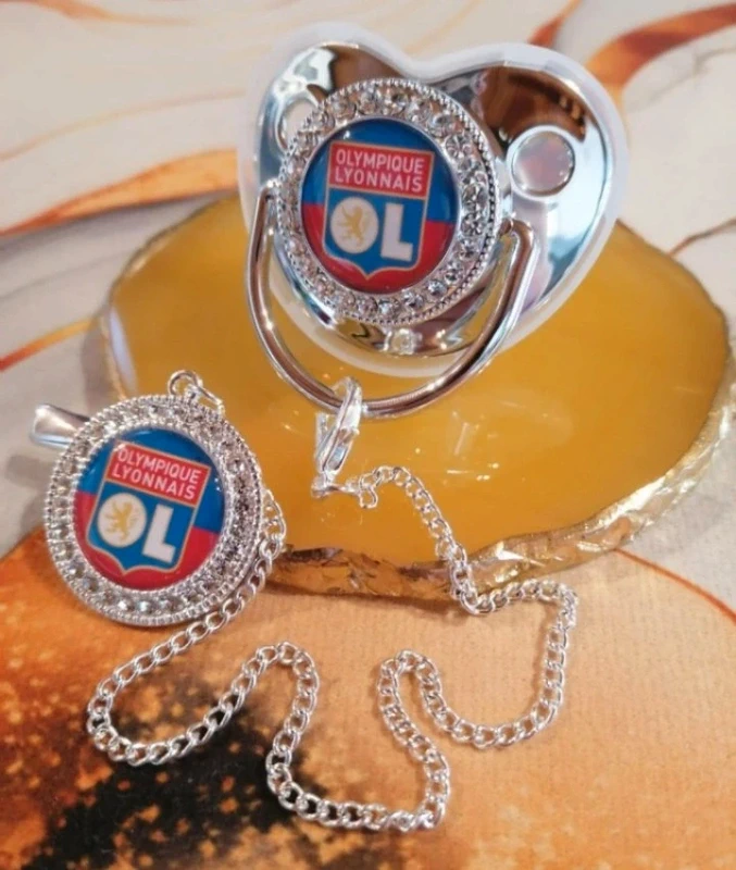 Tétine, Sucette strass avec attache Olympique lyonnais